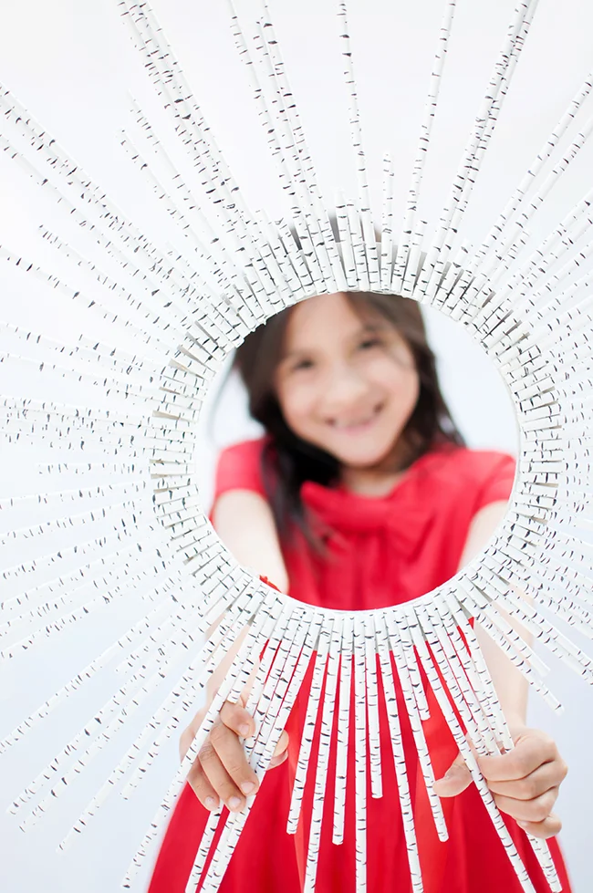 Hi! Today on Wondermint we are making holiday wreaths. These make great decorations for a door or on a wall. And, if you want you can also use this idea to decorate small photo frames or mirrors. In the photo above I glued paper straws to a cardboard wreath frame from Paper Source. On the HOW-TO VIDEO I glue paper straws onto a small round wood frame that I found at Target. Below, are the directions on how to make that type of paper wreath.